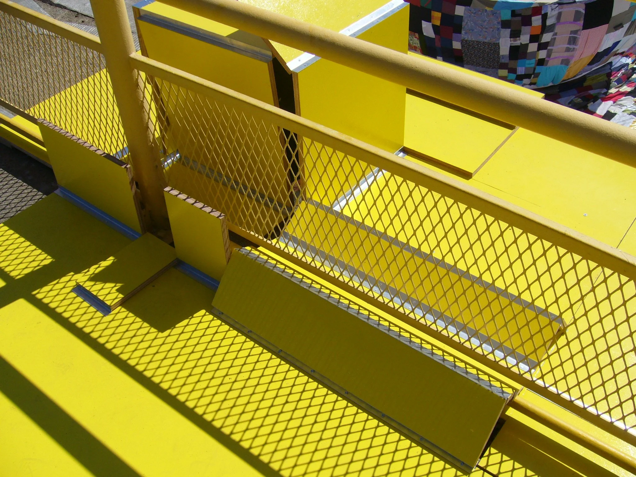 Deux sculptures situées sur deux angles de la terrasse panoramique, conçues à partir des six faces d’un cube, s’insèrent différemment sur ces deux angles. Ces cubes colorés (d’un jaune similaire aux rambardes du site) décomposés, viennent rythmer le lieu, interviennent comme des points de délimitation de l’architecture. Chaque cube va s’adapter et se déformer selon les imperfections et anomalies architecturales du lieu. Ces sculptures offrent un nouveau point de vue sur le paysage aux visiteurs.