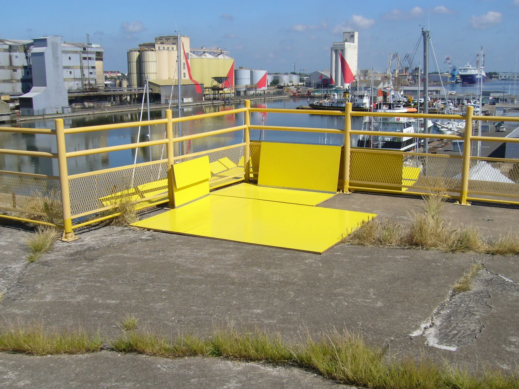 Structures primaires, 2009 - bois contreplaqué, peinture glycéro, métal - Sculptures in situ présentées lors de la Biennale Estuaire 2009 - Terrasse Panoramique, Saint-Nazaire