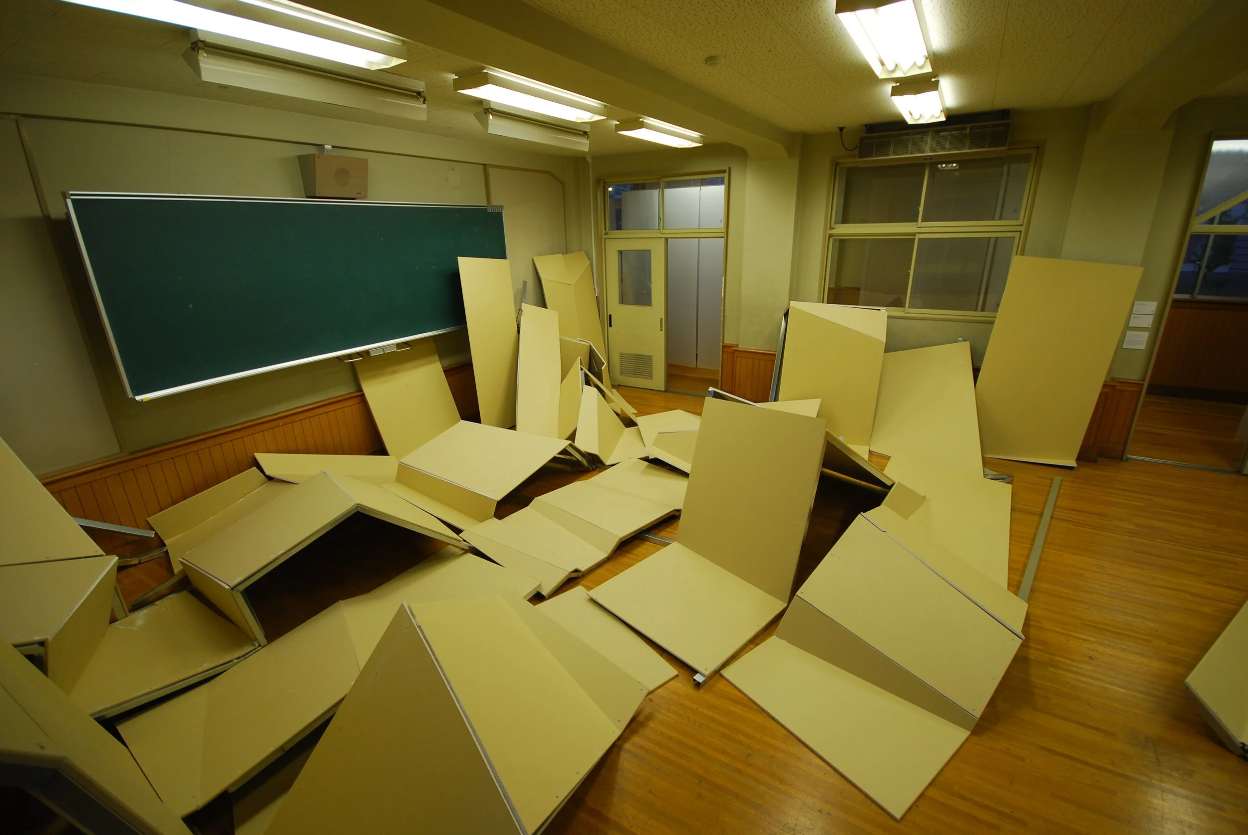 Broken Floor, 2009 - plaque de plâtre, rail métallique - Installation in situ présentée lors de l’exposition Nantes cas 8, Ueno Town Museum 2009 Sustainable Art Project, Tokyo