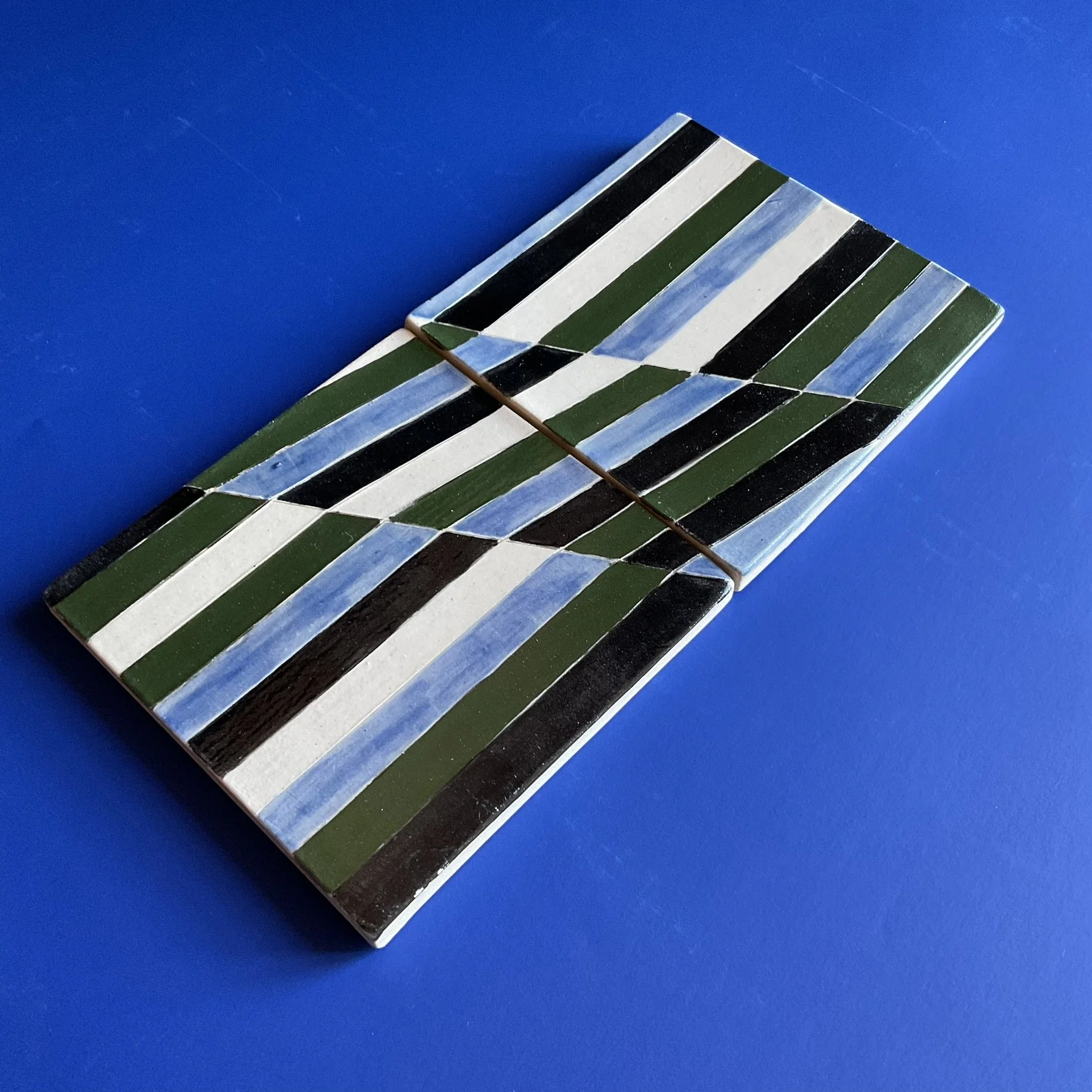 Composition : carreaux en grès blanc + engobe coloré + émail transparent brillant